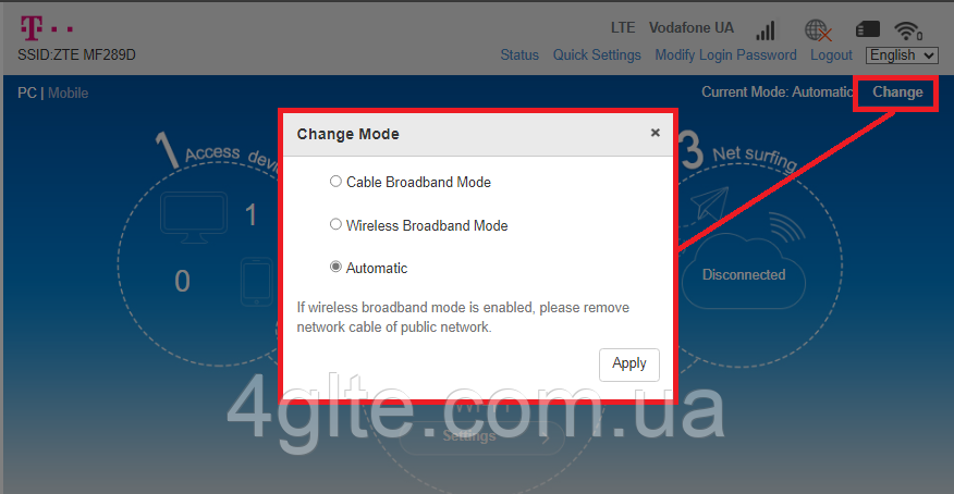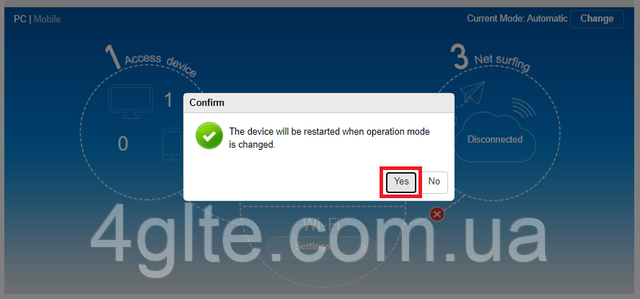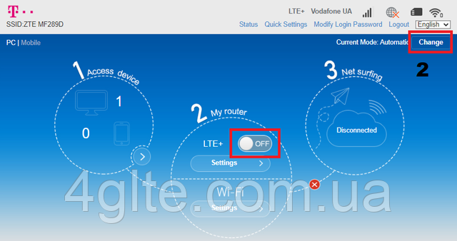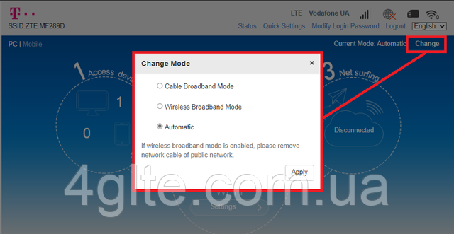2. Після відключення інтернету буде активна кнопка перемикання режимів роботи роутера.