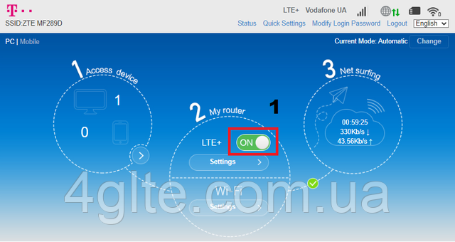 4. Після вибору, перевантаження роутера та активний режим у дії: