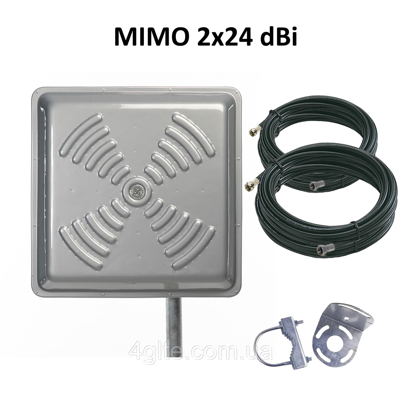Антена панельна 4G LTE Energy MIMO 24 (2*2) (1700-2700 МГц 3G (UMTS), 4G (LTE), 4.5G (LTE-Advanced Pro), 24 дБ) + 2 по 10 метрів кабелю 50 Ом RG58
