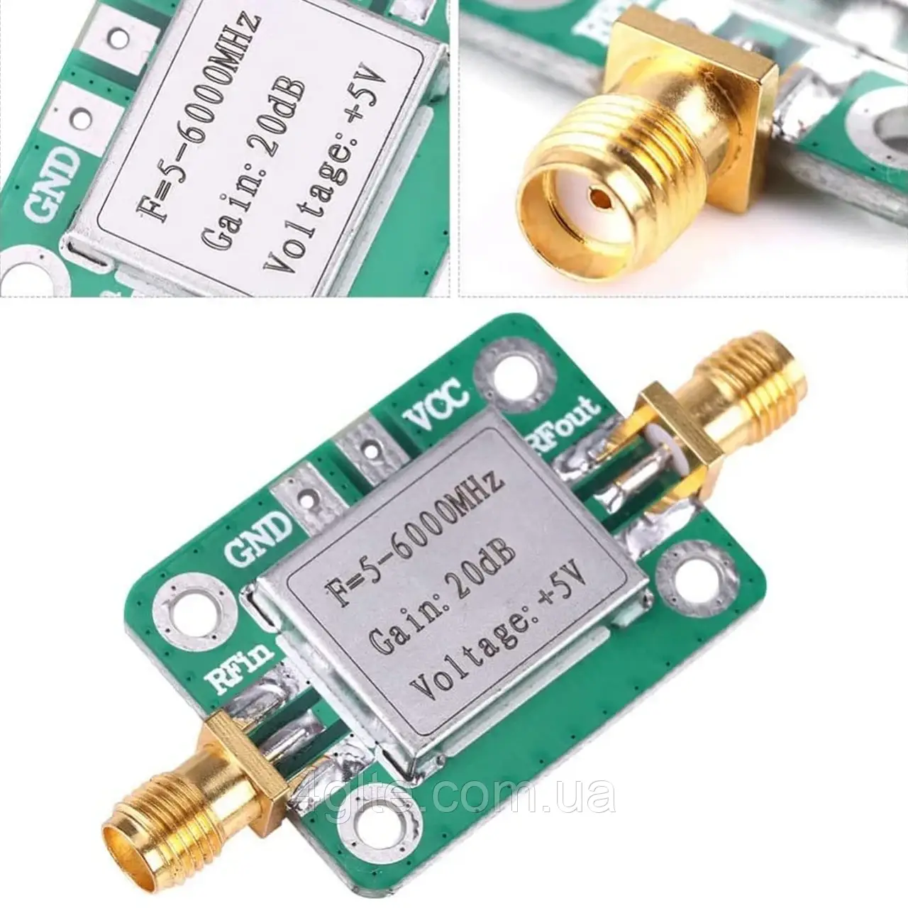 Широкосмуговий 5-6000MHz малошумний радіочастотний підсилювач 20dB, підсилювач сигналу RF RFin (SMA-female) — RFout (SMA-female), 5v